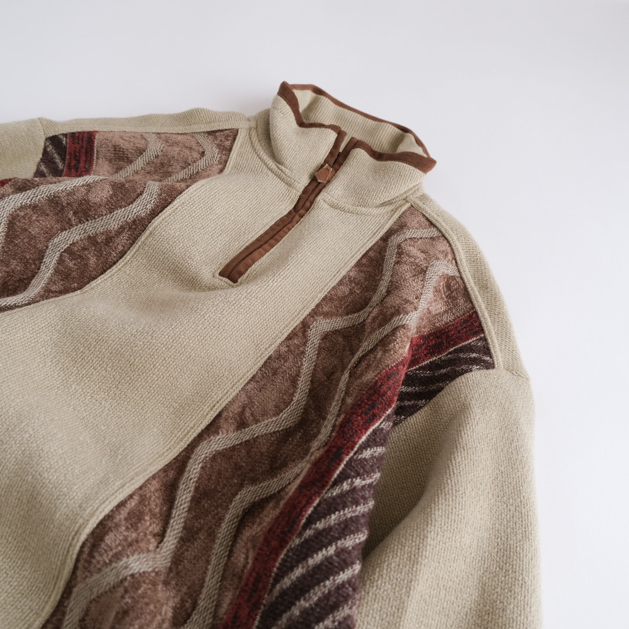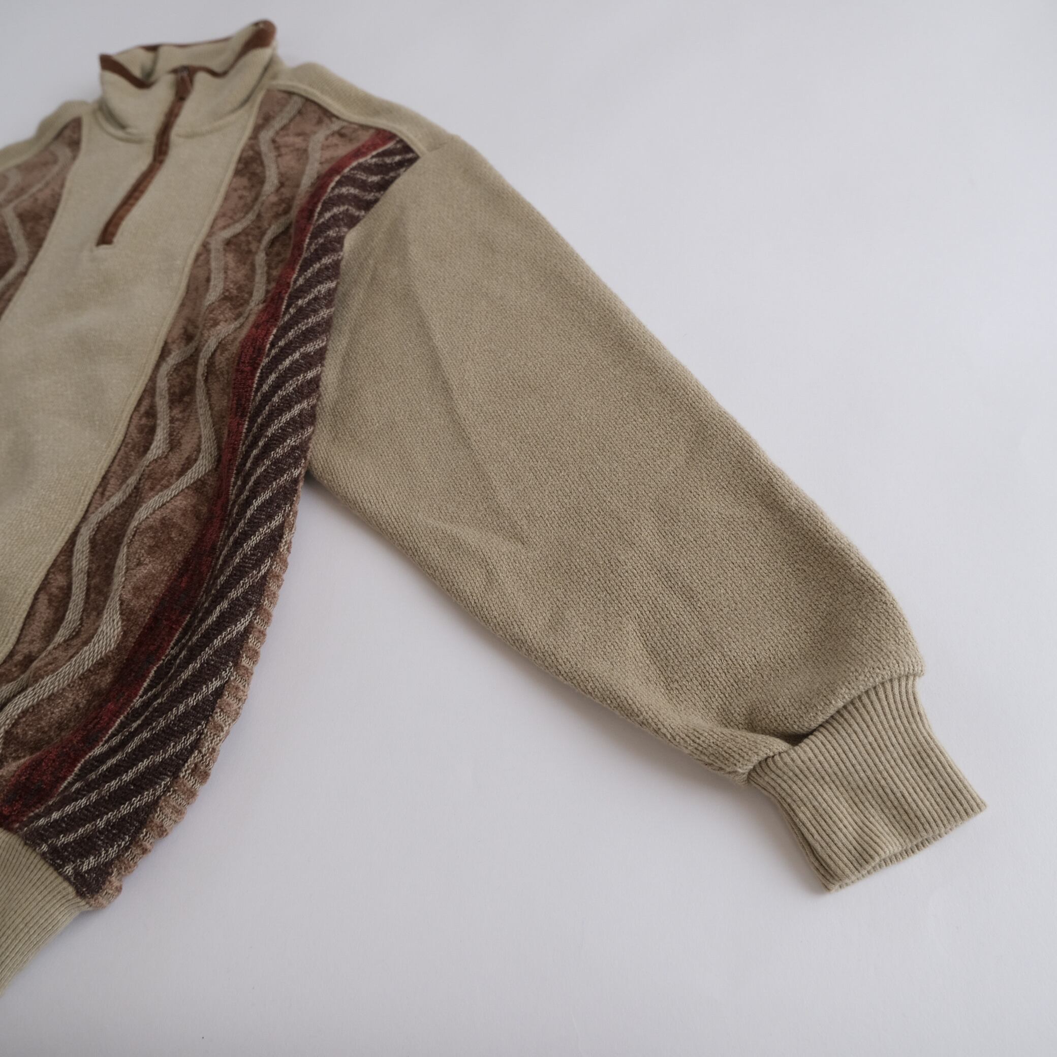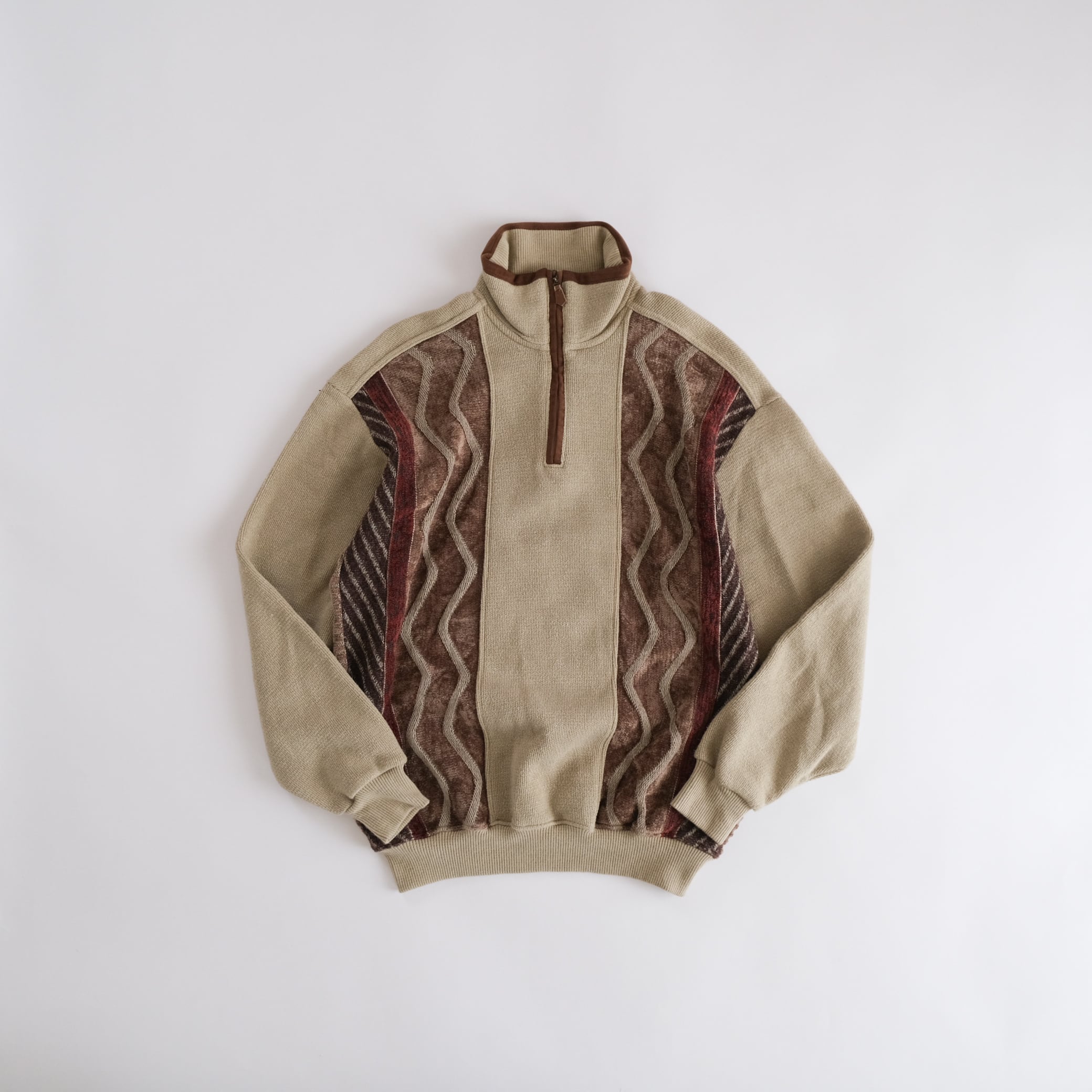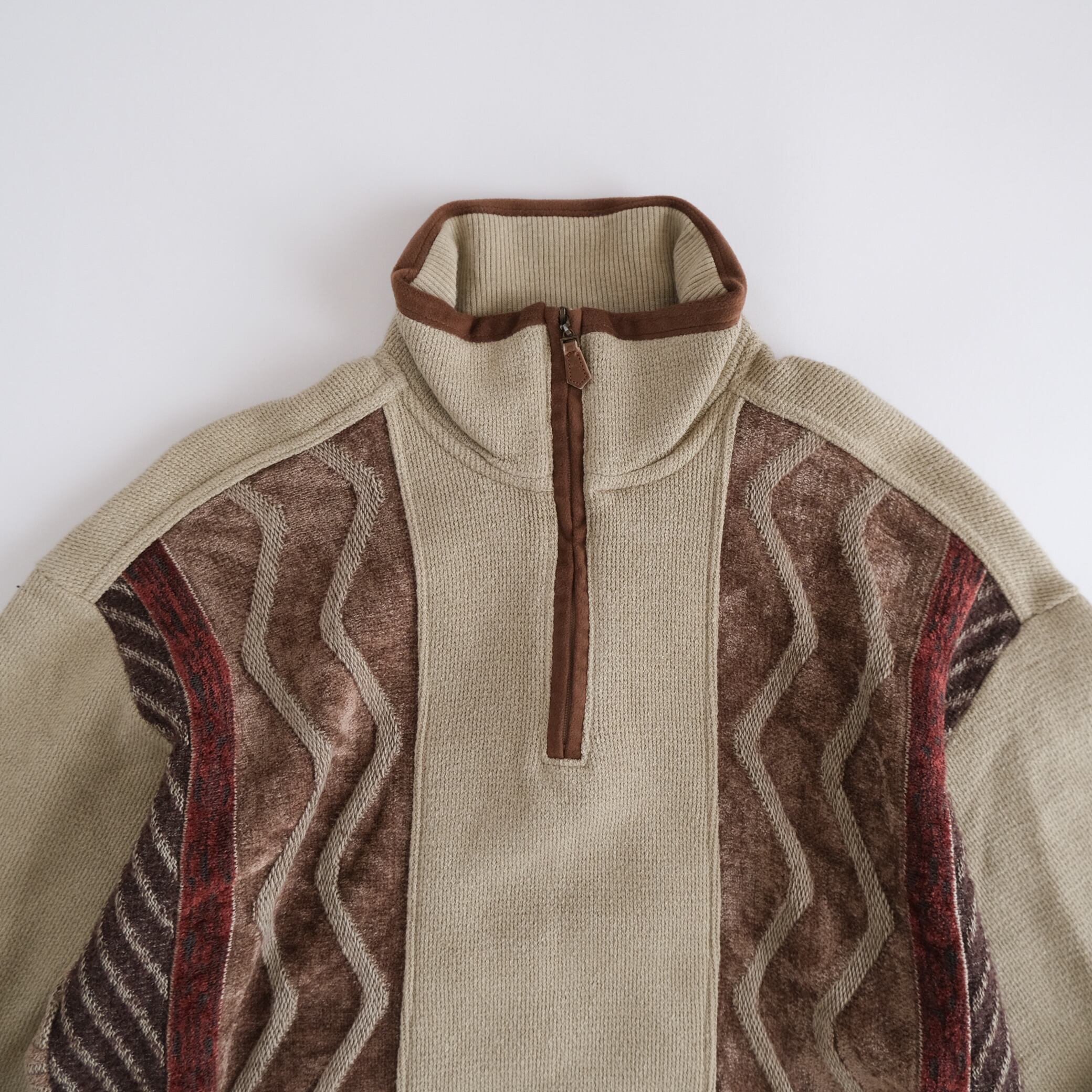 Rayon Half zip 3d patterned beige sweater