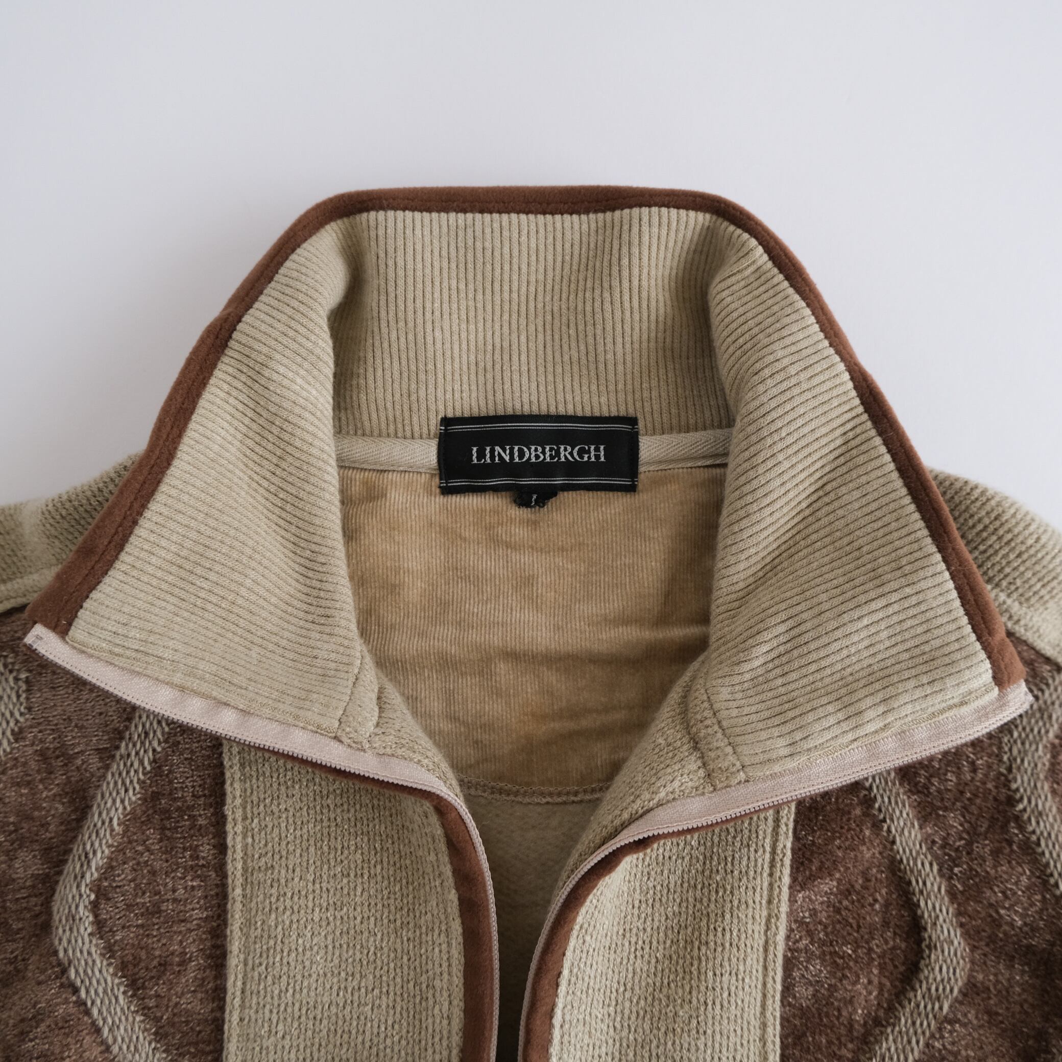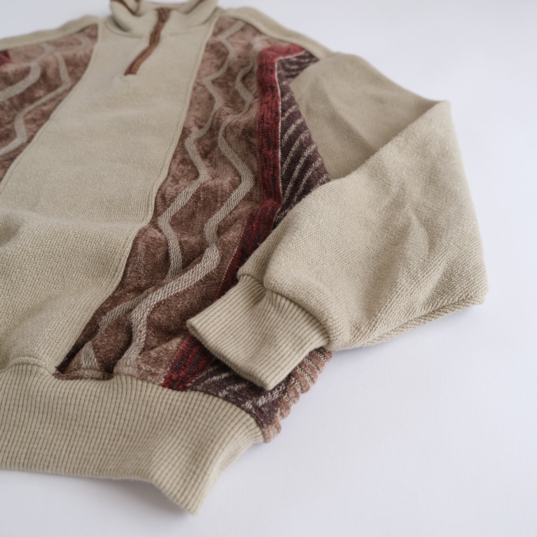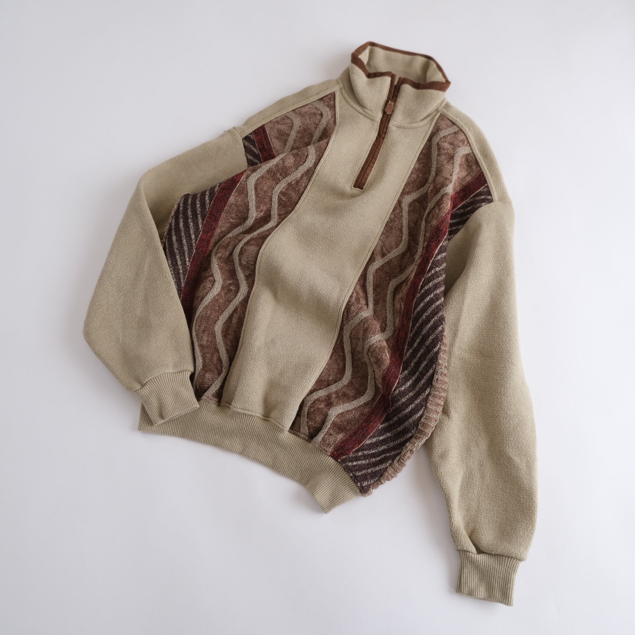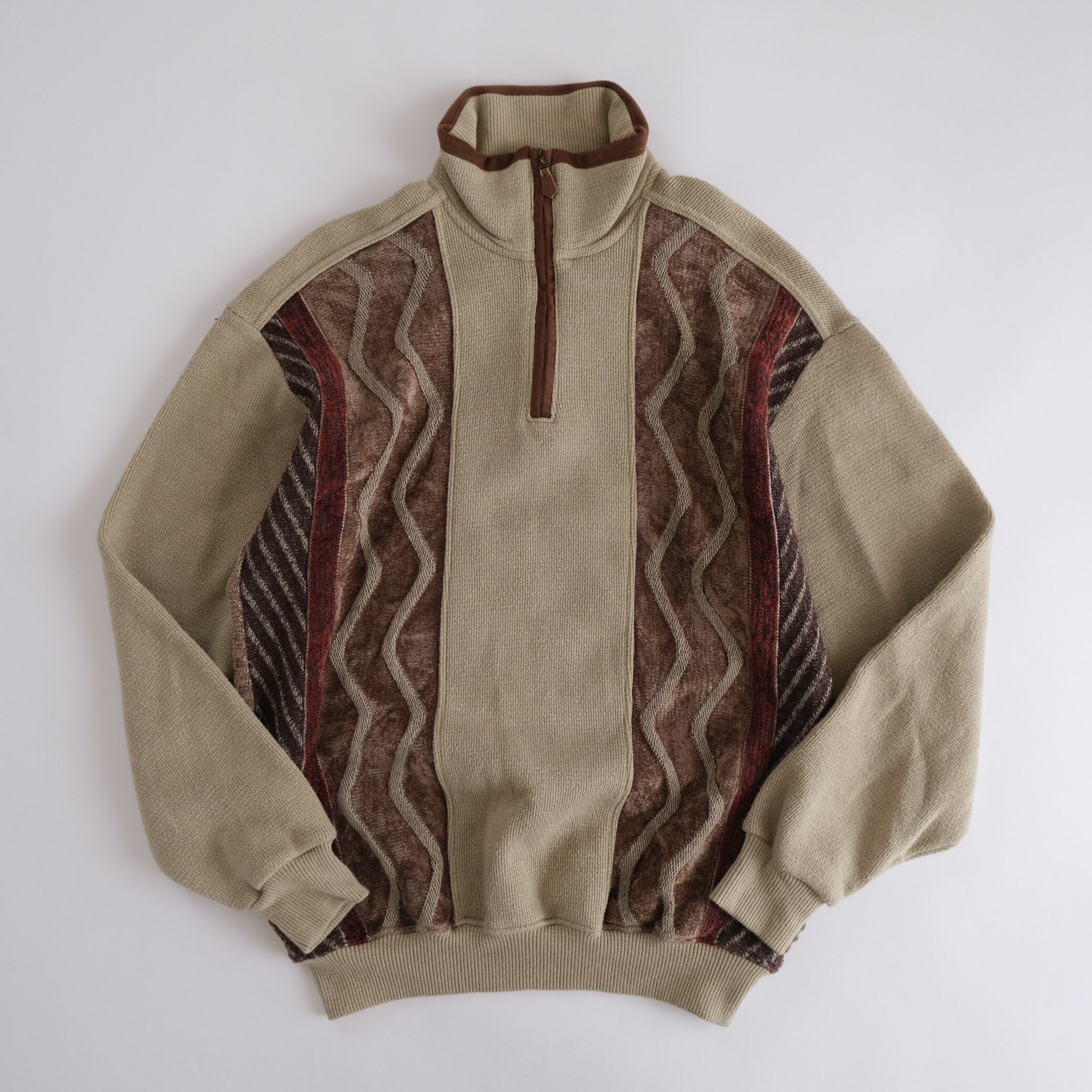 Rayon Half zip 3d patterned beige sweater