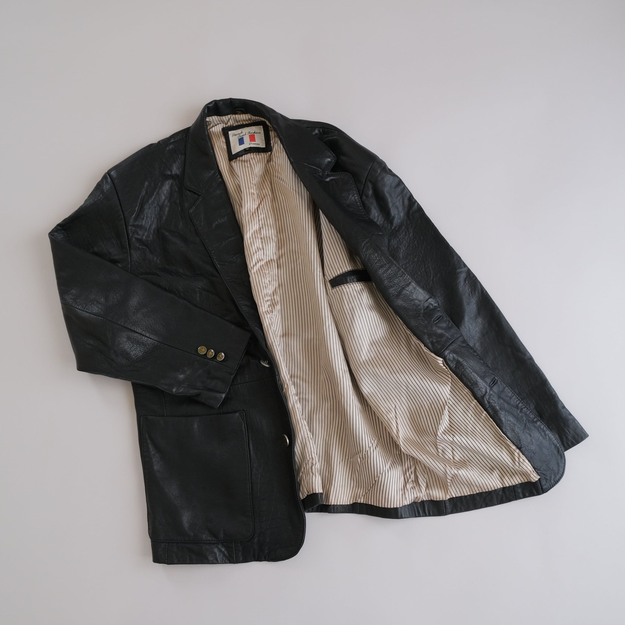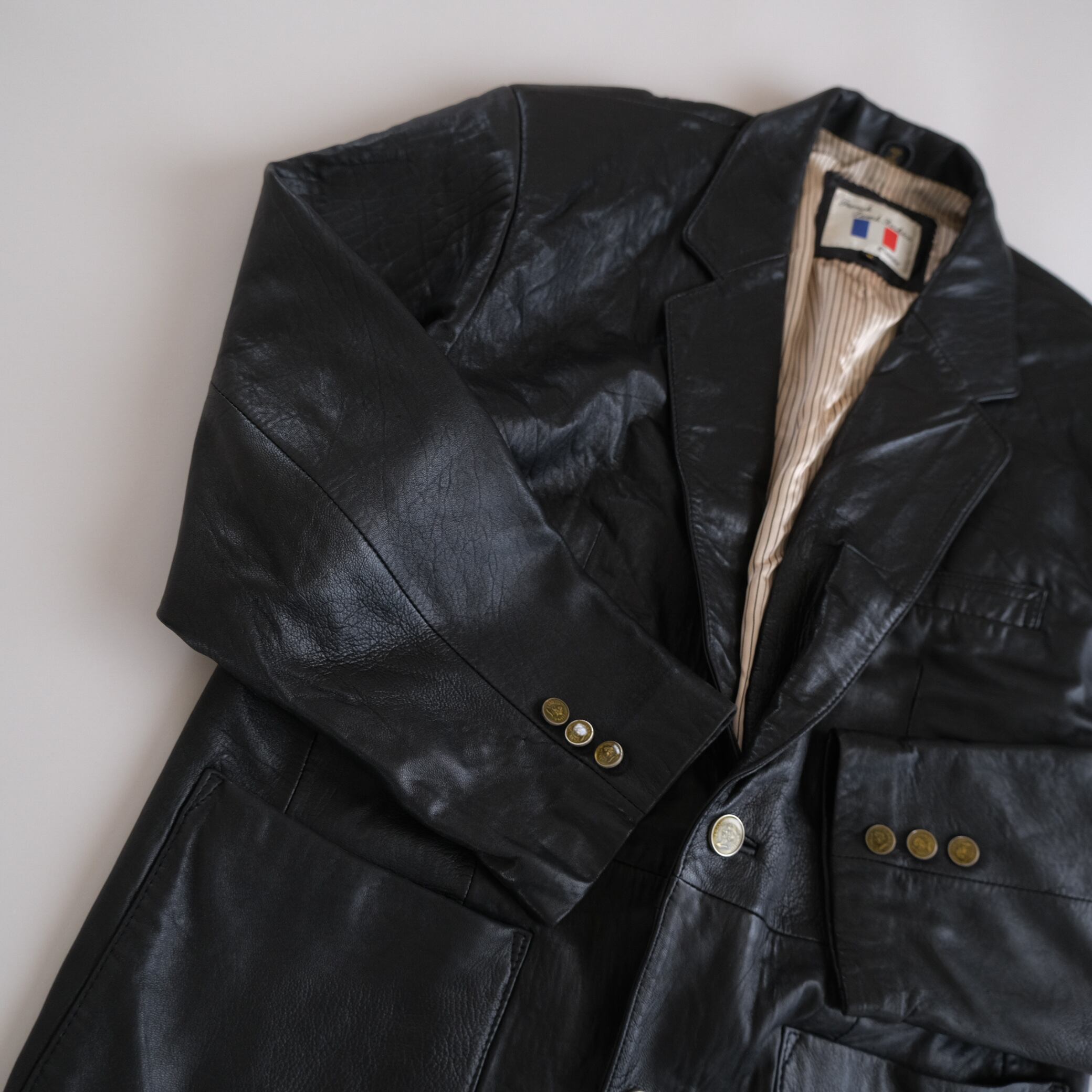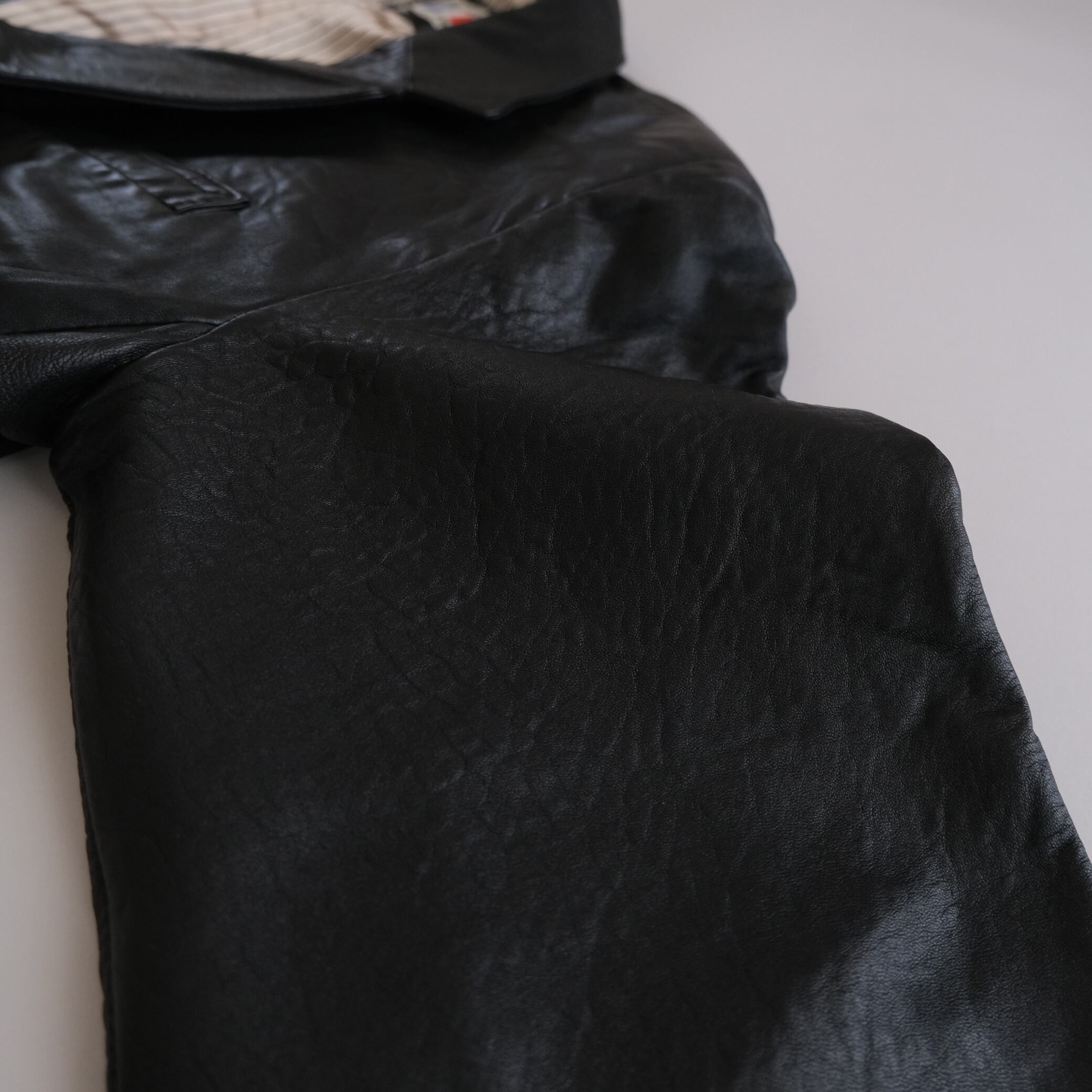 こちらのレザージャケットはブレザースタイルのため、軽い着心地で、程よくリラックスしたシルエットです。